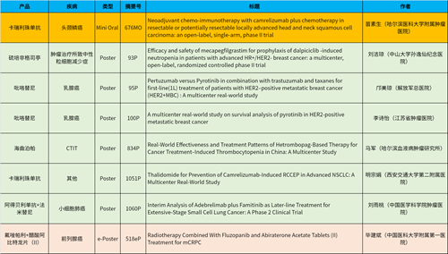 在头颈肿瘤、乳腺癌、肺癌、前列腺癌等多个疾病领域,卡瑞利珠单抗、阿得贝利单抗、吡咯替尼、氟唑帕利、法米替尼、醋酸阿比特龙片(II)等抗肿瘤新药相关研究一共入选了1项简短口头报告、4项壁报展示和1项电子壁报,彰显了利来w66国际医药强劲的研发实力。